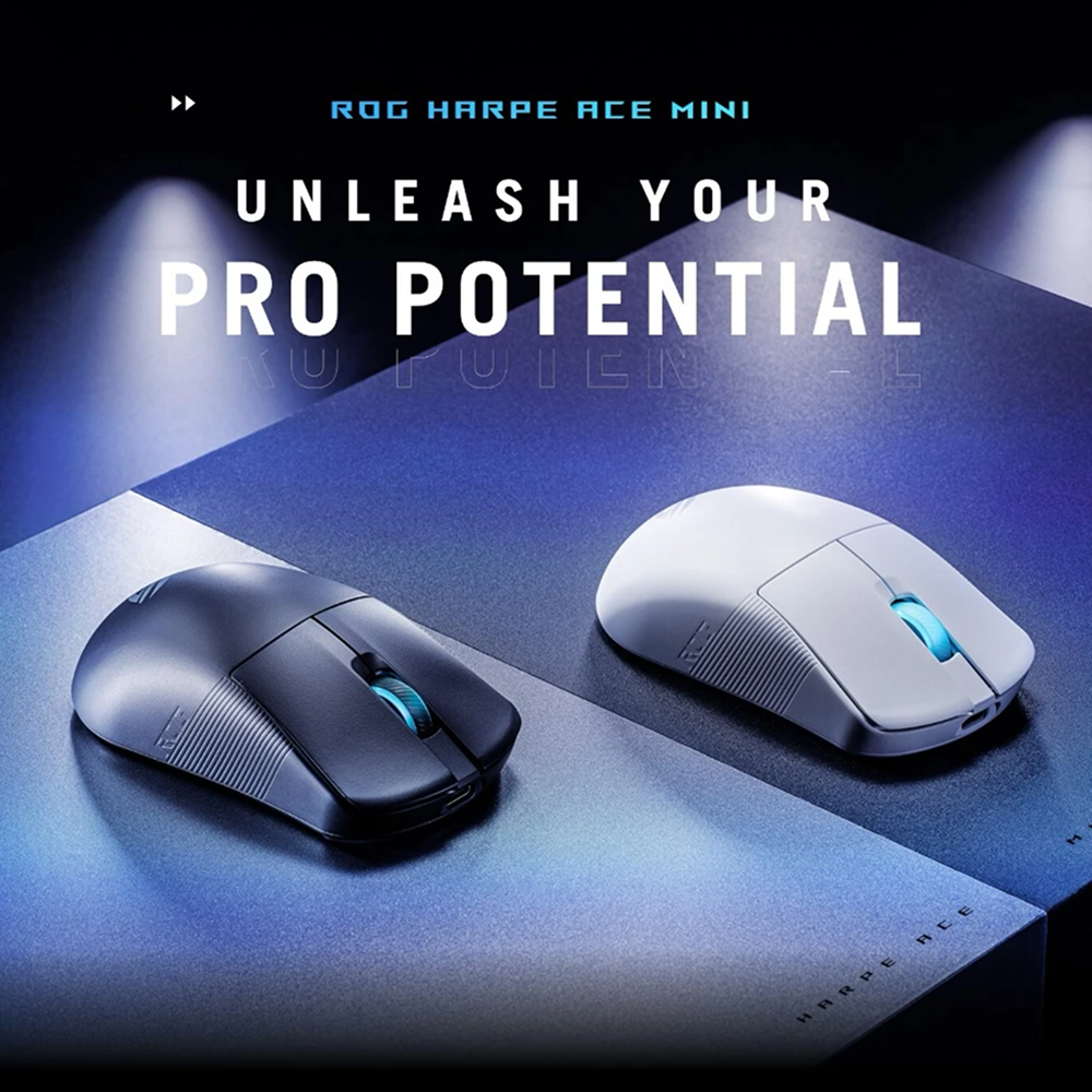 The ROG Harpe Ace Mini is an ultralight 49-gram semi-symmetrical gaming mouse with a shape approved by pro FPS players. Equipped with 42,000-dpi ROG AimPoint Pro optical sensor and ROG Optical Micro Switches, the ROG Harpe Ace Mini displays industry-leading wireless performance with SpeedNova wireless technology and supports up to 8,000 Hz wireless polling rate (compatible with the ROG Polling Rate Booster).