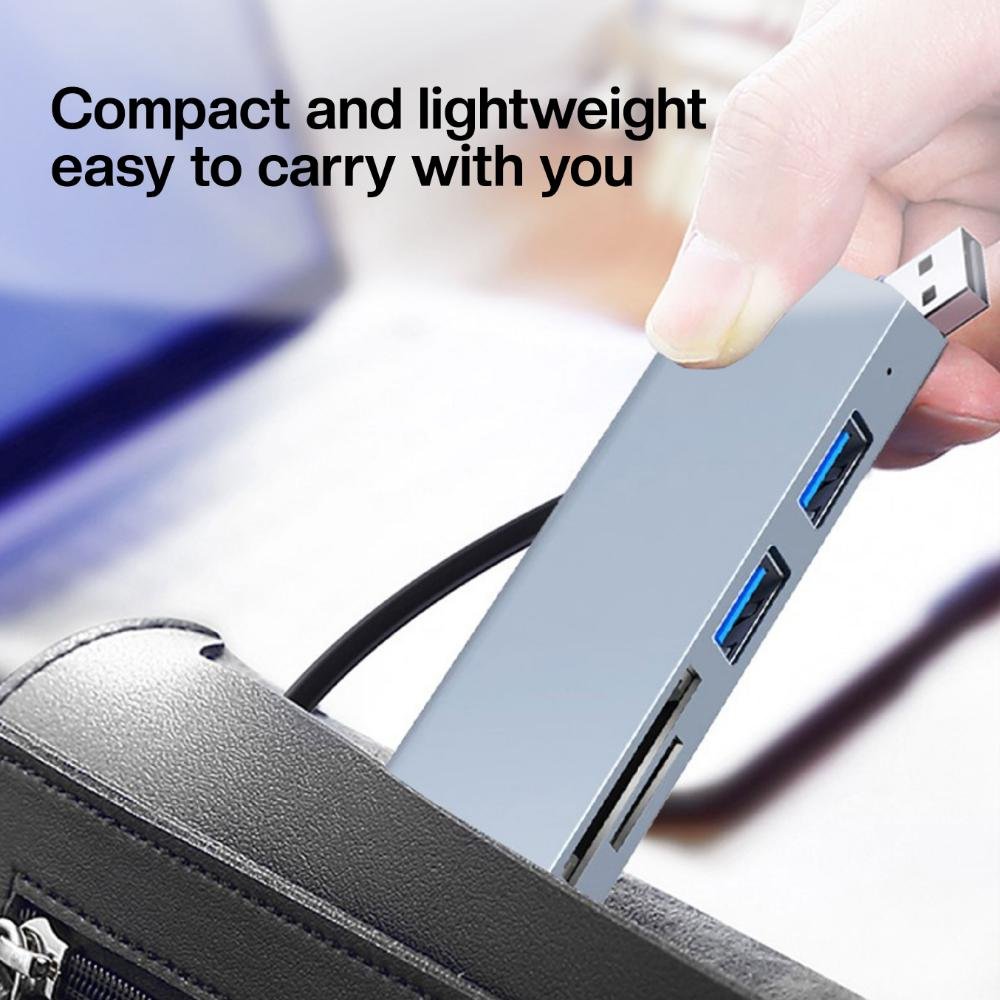 Type-C to USB3.0 to USB3.0/USB2.0 x 2 with SD&Micro SD Card Reader HUB with an aluminum shield that supports data transfer speeds of up to 5 Gbps is a device that allows you to connect up to four USB devices (such as flash drives, printers, or mice) to a single USB port on your computer or other device. These HUBs typically work by providing additional USB ports that you can use to connect your devices, allowing you to expand the connectivity of your device.And the SD&Micro SD allows you to transfer or read data using this adapter