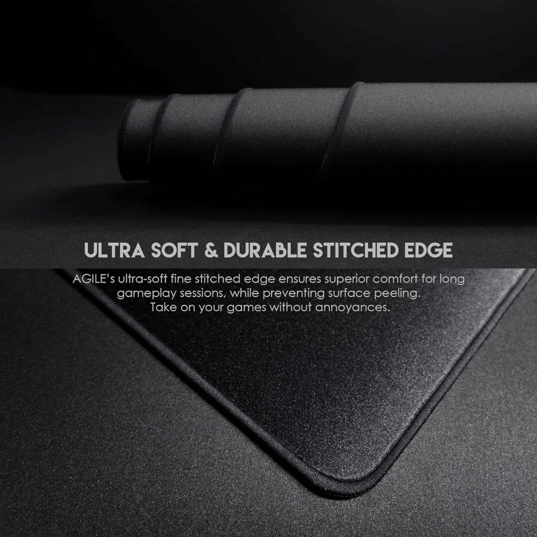 -Ultra-Soft stitched edge ensures superior comfort for long gameplay sessions, while preventing surface peeling.